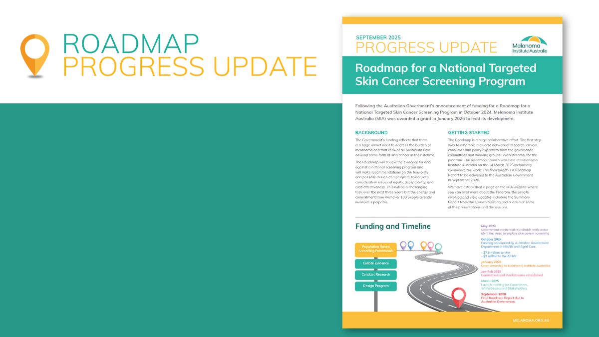 The four-year Government Funded Roadmap for a National Targeted Skin Cancer Screening Program commenced in March 2025. MIA is leading the development of the Roadmap in collaboration with a large network of experts and stakeholders. The team has provided this 6-month update on progress so far.